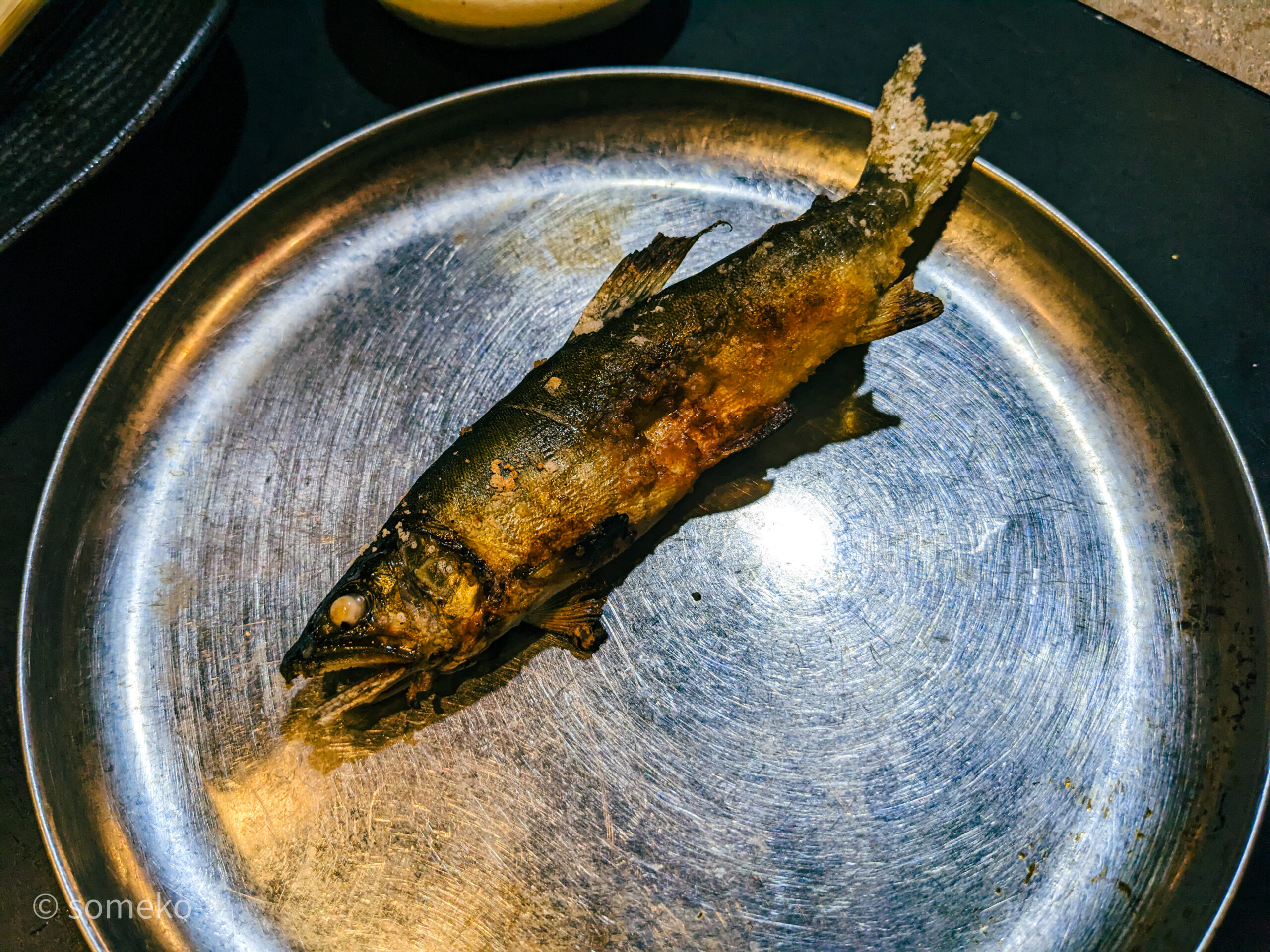 あとから聞いた話、炭で焼くと魚の内臓がよく焼けるので臭くならないそう。