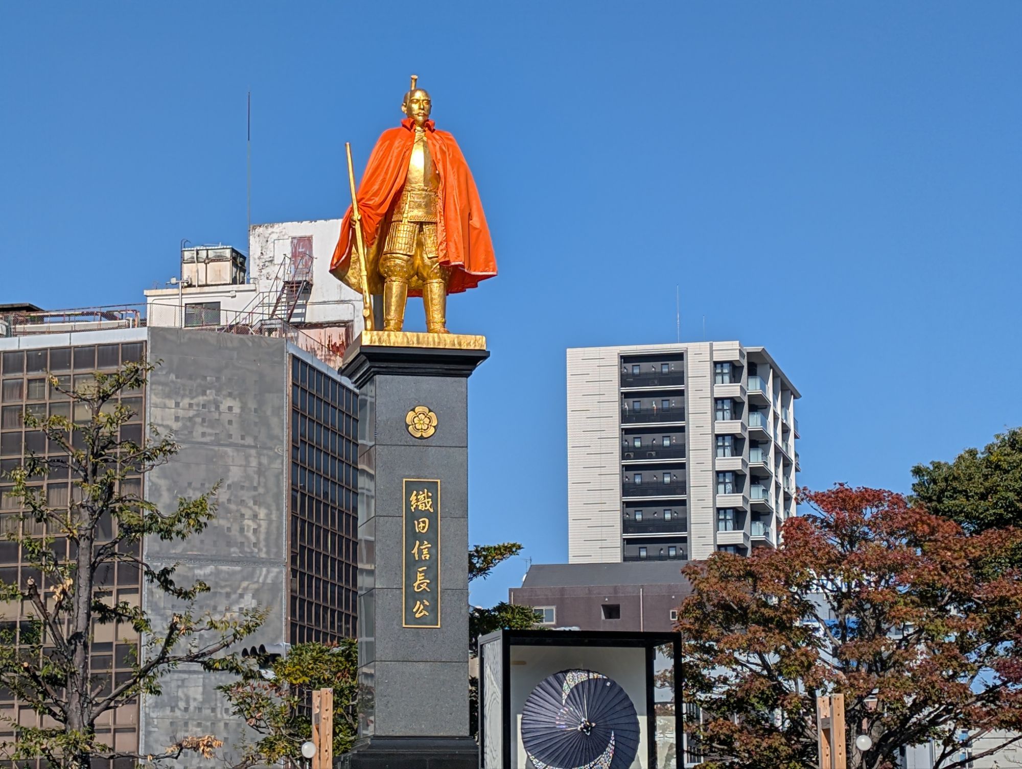 岐阜の駅前に、輝く金色の…信長!